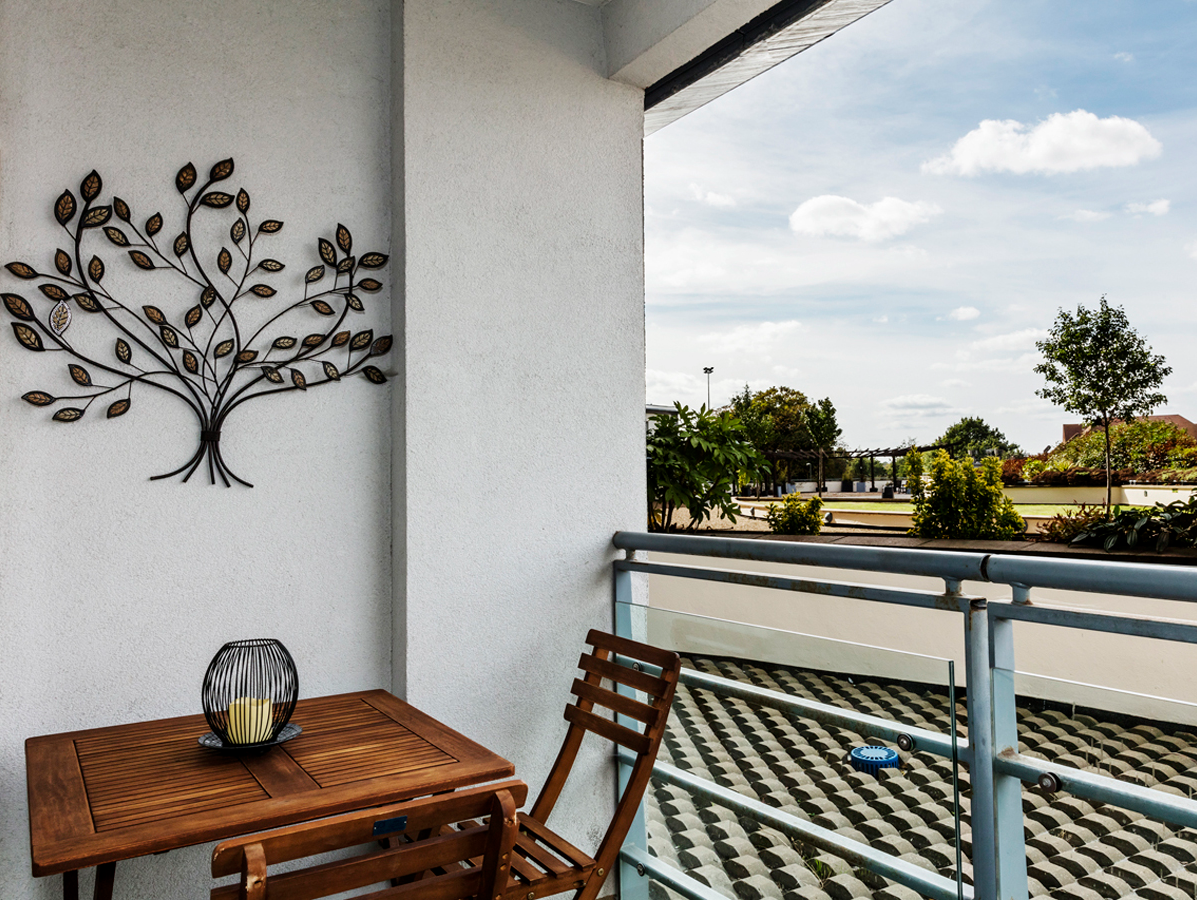 The Rose Suite is a light and bright apartment located on the 6th floor of a 14 floor building with views of the Surrey Hills beyond.