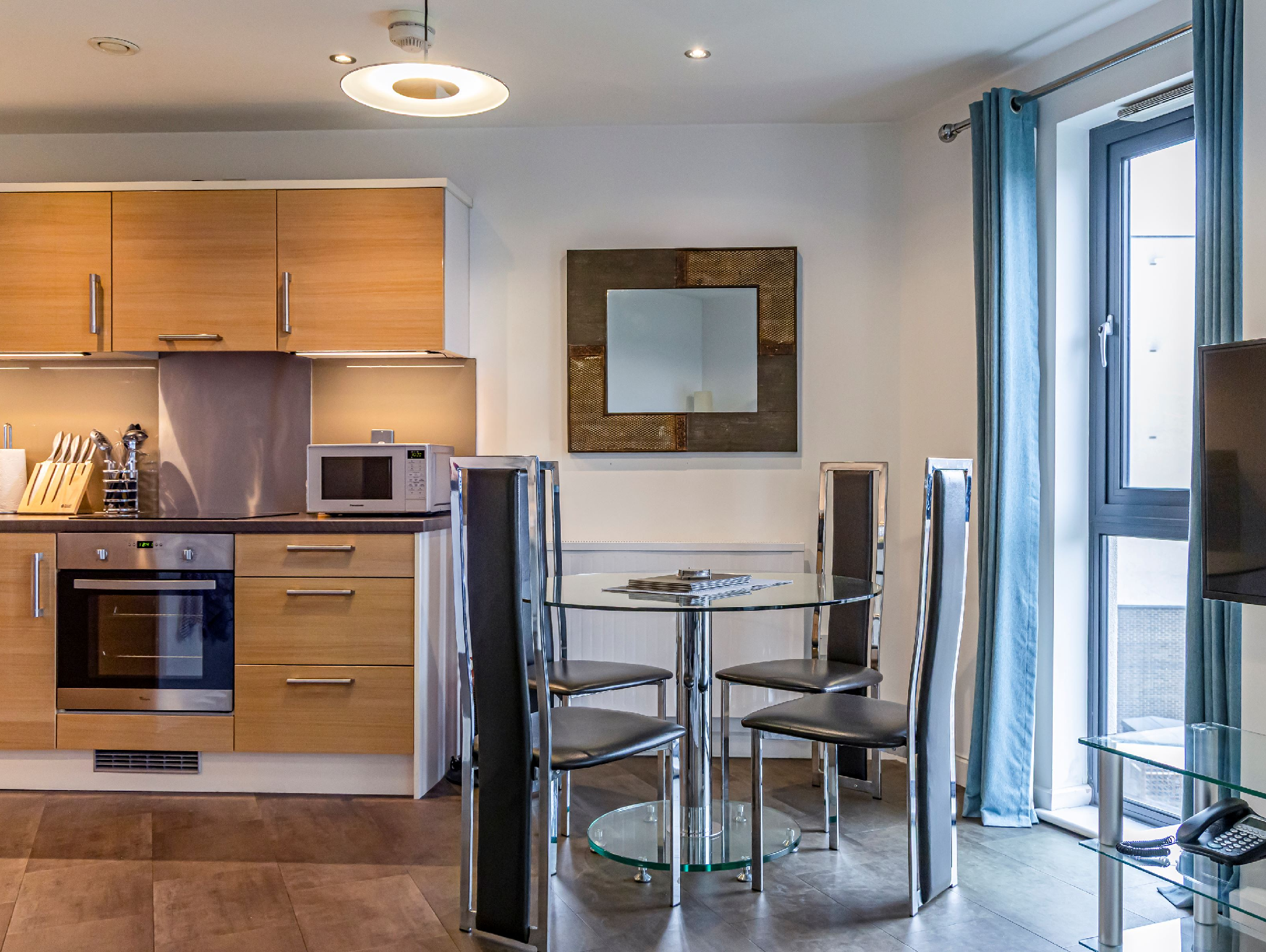 A bright, quiet and airy modern apartment with open plan living, dining and kitchen with a walk on balcony that enjoys the afternoon sun.